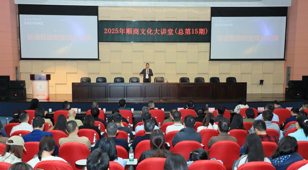 11月26日下午,2025年顺商文化大讲堂在我校学术交流中心一号报告厅举行,聚焦立德树人根本任务,深化产教融合,夯实文化育人基石,赋能高素质技术技能人才培养。本期大讲堂特邀广东瑞德智能科技股份有限公司董事长、总裁汪军作题为“瑞德智能创变成长之路”的主题报告。