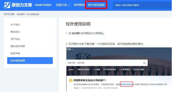 校外使用时必须先用校内有效IP地址网络访问网站,通过微信扫码绑定高校信息,即可在校外,操作步骤如下: