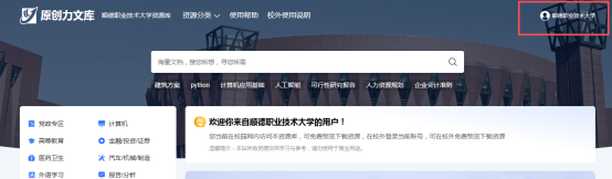 3.验证成功后,网站右上角会出现出对应的学校名称,说明绑定信息成功,后续即可在校外微信扫码访问。